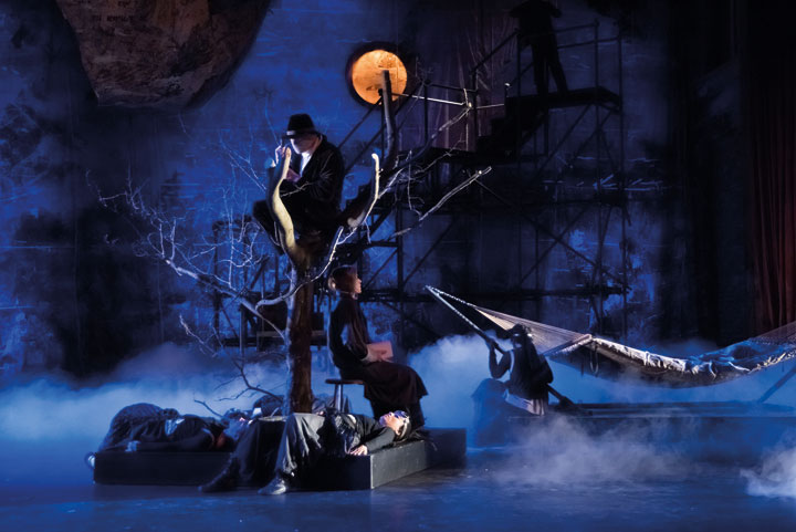 Der Bilderrhythmus wird vom Text in der Übersetzung von Alexander Nitzberg bestimmt und verlangsamt die Szenenfolge des über zwei Stunden dauernden Stückes. Dass dieser Text den Odeon-Theaterleiter Erwin Piplits nicht mehr losgelasssen hat, ist verständlich, stöbert doch auch er mit seiner fantastischen Theatersprache seit Jahrzehnten die Welten zwischen Traum und Wirklichkeit auf. Auch diesmal setzten die Darsteller des SerapionsEnsembles diese Zwischentöne mit großer Integrität um. Dennoch: der enigmatischen Wortlastigkeit zu folgen, war eine Herausforderung, und in dieser Länge konnten auch die großartigen Bilder meine Aufmerksamkeit nicht durchwegs halten.