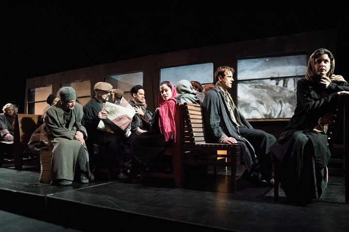 Ihre Lyrik eröffnet ein Seelentableau voller Geheimnisse, Schwermut, Verzweiflung und Hoffnungslosigkeit. Diese Grundstimmung wird durch die musikalische Collage und das szenisch Bildertheater des SerapionsEnsembles verstärkt. Erwin Piplits und sein Team entwerfen eine Szenefolge des Mysteriösen: einen Maskenball, Szenen auf einer riesigen Treppe, im Mondlicht, eine Zugreise. Realistischer gestaltet sich das Tribunal der Stalin-Ära, das der Dichterin Schreibverbot auferlegt und sie in den Tod treibt. (Formal erinnert diese Szene übrigens an Kurt Jooss’ Balett „Der grüne Tisch“.) Lediglich zwei Totengräber (einer davon Erwin Piplits) durchbrechen die getragene Stimmung mit wienerischen Zoten.