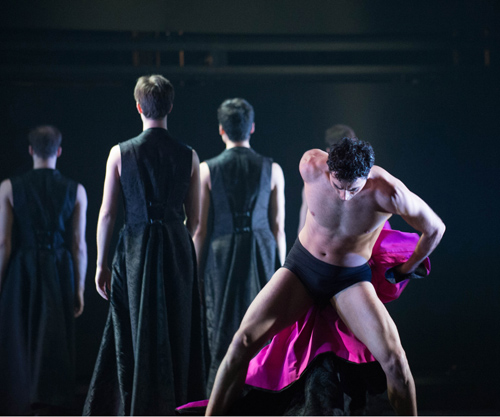 Am eindringlichsten wird die Choreografie in den Ensembleszenen, denn Nacho Duato versteht es, die Energie die Gruppe zu mobilisieren, und diese hat sich in seinen Stil bereits sehr gut eingetanzt. Vor allem die Männer verkörpern das dynamisch-raumgreifende Tanzidiom ihres Chefs überzeugend. Und so wird auch die Toccata für Orgel für acht Tänzer im zweiten Teil zum Höhepunkt des Abends. In ihren weit schwingenden schwarzen Mänteln mit fuchsia-färbigem Futter (Kostüme: Nacho Duato in Zusammenarbeit mit Ismael Aznar) fegen sie als Chor, aus dem sich immer wieder Einzelne herausschälen, weit ausholend über die Bühne. Doch im darauf folgenden Bild trippeln die Damen wie ferngesteuerte Automaten mit abgewinkelten Armen herum und verwischen den energetischen Aufschwung.Stille