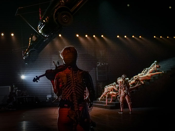 Actionreichen Totentanz mit Klapperskeletten und Motorsägen. Wo Holzinger darauf steht, sind stets Getöse, Körpersäfte und Action darin. Dante Alighieris Reise ins Totenreich wird hier in der Halle E des Museumsquartier Wien als "A Divine Comedy" zum hypnotischen Traum der Akteurin Annina Machaz, die im Prolog von einer Hypnotiseurin in Trance versetzt wird. Sie muss auf Geheiß im Wachschlaf zu Dante werden und Hölle, Purgatorium und Paradies durchlaufen.