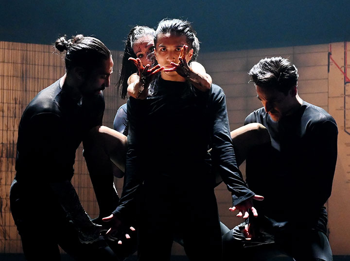 Nach der Pause folgte „Mimi“ von László Velekei. Seine neue Choreografie basiert auf Menyhért Lengyels Geschichte „Der wunderbare Mandarin“, veröffentlicht 1916. Hier geht es um drei Halunken, die das Mädchen Mimi zwingen, Freier anzulocken, die sie dann ausrauben und ermorden. Aus dem schäbigen Vorstadtzimmer transferiert László Velekei sein Werk in eine U-Bahn Station und siedelt sie im Drogen-Milieu an. Die skizzierte Handlung changiert zwischen Realität und Traum bzw. Drogenrausch um Mimi, das Objekt der Begierde. Statt der Komposition von Béla Bartók verwendet Velekei Musik von Max Richter. Das Leading-Team mit Assistentin Zsuzsa Jónás, Gabi Győri (Ausstattung), Ferenc Stadler (Licht) und Alexandra Csepi (Dramaturgie) bringen ein sehr dichtes Stück auf die Bühne, in das auch der Orchestergraben als Abgrund einbezogen wird. Adrienn Matuza (Mimi); Daichi Uematsu (Mandarin), Richard Szentiványi (Freier) sowie Luka Dimic, Zoltán Jekli und Luigi Iannone als die drei Burschen sorgten mit ihrer packenden Darstellung für ein spannendes Tanzerlebnis.