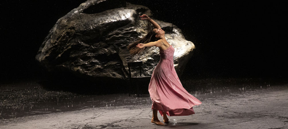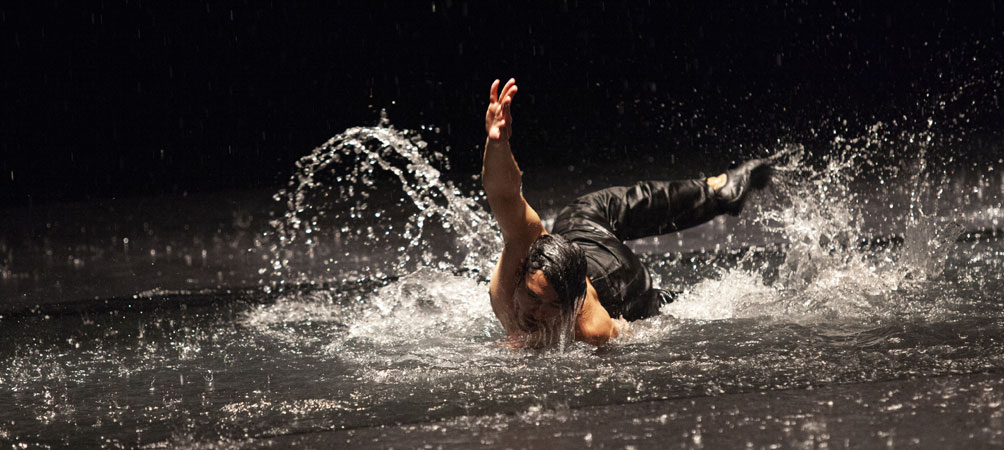 Hier können die Tänzer*innen des Tanztheater Wuppertal ihren Bewegungsdrang voll entfalten. Die Durchlässigkeit ihrer Körper, mit denen sie ihre Tänze auf die Bühne bringen, hat hier einen ganz eigenen Charakter. Auch diesem weich fließenden und dynamischen zeitgenössischen Bewegungsmodus drückte Pina Bausch ihren Stempel auf, und zieht das Publikum bereits in den ersten Minuten mit einem Männerduett in den Bann. Das wird sich im Laufe des Abends bis hin zu einem ausgelassenen Schlittern und Rutschen im Nassen steigern. Natürlich darf auch das elegante Defilé der Gruppe nicht fehlen, das so vielen ihrer Stücke eine unverwechselbare Note verleiht.