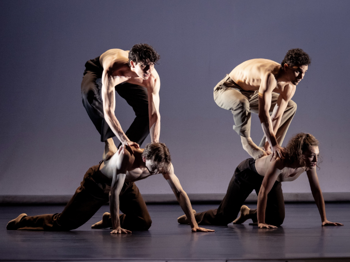 Im ersten Teil zu Schuberts Streichquartett „Der Tod und das Mädchen“ erforschen je eine Gruppe von vier Männern und vier Frauen in dynamischen Tanzszenen Beziehungen (wobei durch den Einschluss von jeweils einem Mitglied des anderen Geschlechts Genderneutralität angesprochen wird). Das Bewegungsmaterial beruht auf raschen Wechseln der Ebenen auf der Basis von fluiden Bodensequenzen. Offenbar hat sich Adi Hanan hier einiges von ihrem israelischen Landsmann Hofesh Shechter abgeschaut. Doch Hanan gestaltet die Aneinanderreihung dieser Elemente in einer braven Ordnung, da fehlt es (noch?) an spritzigen Verschränkungen.