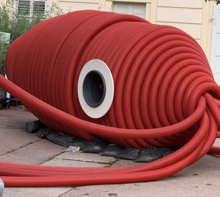 Im Herbstlicht unter Kastanienbäumen hüpft aufgeregt eine graue Stadttaube über den Asphalt des Fürstenhofs und erzählt von wundersamen Dingen. Sie habe da was gefunden, da vorne, im Hof liegend. (Kleiner Sidestep: Sie findet eine kleine Feder am Boden, hebt sie auf und flüstert ihr leise, zum Himmel aufschauend, zu: „Mami!“.) Und gleich gehts weiter mit der Überraschung: und wirklich, mitten im Hof vor dem Dschungel Wien liegt ein großes, rotes Etwas mit dunklen Augen und langen roten Tentakeln (Skulptur von Kollektiv Moradavaga).