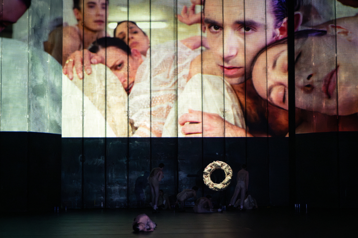 Sie sind wunderschöne Menschen, die Tänzer*innen des Wiener Staatsballetts. Doch wenn sie zwischen Tüll auf der Leinwand herumliegen, suchend, fragil, unsicher, evozieren sie Hoffnungslosigkeit. Davor steht ein silberner Kranz, wie für ein Begräbnis dekoriert. In einem späteren Video wird eindeutig, dass es in dem Stück “High” von Louis Stiens zur Musik von Lisa Streich um den fragilen Zustand zwischen Sucht, Verlangen und Befriedigung von Junkies geht.