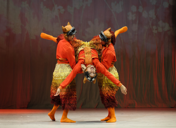 Der Prinz (Ethan Ribeiro) – zu Beginn ganz Kind an der Rampe – spielt mit gefalteten Papiertieren. Aus seinen Fantasien wird er durch seinen Erzieher (Gjergij Meshaj) gerissen – ein kreativer Freigeist mit Gespür für die Notwendigkeit des Bücherstudiums. Vergleichbar deutlich lesbar in ihren Bewegungsprofilen und Gefühlshorizonten sind auch die anderen Charaktere. Sobald Montana Dalton und Chia-Fen Yeh auf der Bildfläche erscheinen, wird es turbulent. Die beiden Stiefschwestern gibt es eben nur im Doppelpack. Wenn ihr wildes Treiben Schäden verursacht, schieben sie die Schuld Aschenbrödel (Micaela Romano Serrano) in die Schuhe. Diese weiß jedoch im Gegensatz zu ihnen mit Dingen sorgsam und pfleglich umzugehen und kann sich zudem gut alleine beschäftigen. Dennoch entscheidet sich die Stiefmutter (Yunju Lee) immer wieder zum Vorteil der eigenen Töchter – zumindest im ersten Teil. Eine coole, überraschend neue Wendung nimmt die altbekannte Geschichte erst nach der Pause.
