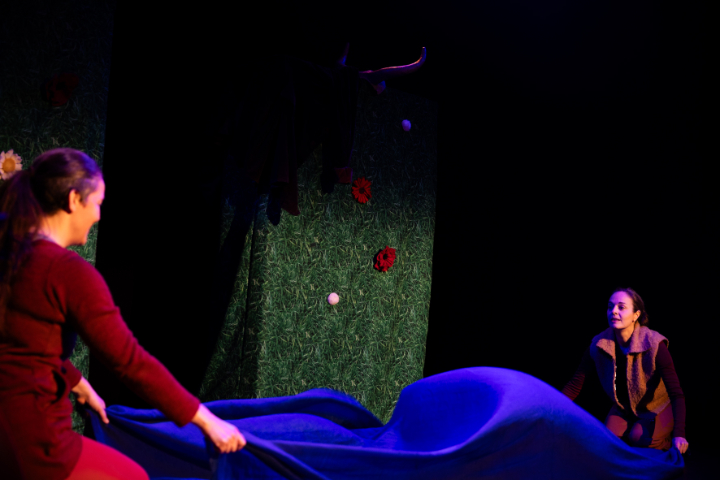 Regina Picker gibt u.a. den freundlichen und neugierigen Zehenbär, der offen auf die Wunder der Natur zugeht und sich einfangen lässt von der Melodie der Blumen, der Vögel, des Wassers. Karin Steinbrugger wechselt die Figuren mühelos und leicht, stampft als brummigfreundlicher Auerochse über die Wiesen, tanzt elegant und stolz als Schwan und erobernd arrogant als Mensch über die Bühne.
