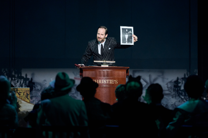 Zu Ilya Demutskys Musik (die Nummern changieren beständig zwischen „heutigen“ Tönen und Zitaten aus den Ballettstücken, die auf der Bühne zu sehen sind) wird in „Nurejew“ viel getanzt – was denn auch sonst. Doch „Nurejew“ ist von der Anlage her nicht ein Ballett, sondern ein Theaterspektakel mit Tanz. Gesprochene, zum kleineren Teil auch gesungene Texte sind das A und O des Konzepts - und es wird viel gesprochen an diesem Abend (der auf diese Weise ganz nebenbei die Eigensicht vieler Tanzschaffender ad absurdum führt, Tanz sei per se eine „einfach so“ und überall zu verstehende eigene Sprache, die des erklärenden Wortes nicht bedarf). Angelpunkt der Inszenierung ist folgerichtig ein Schauspieler. Odin Lund Biron beherrscht (in durchweg zu langen Szenen) als Auktionator gleichermaßen die Rahmenhandlung wie die Erzählung, wobei er auch in andere Rollen schlüpft – etwa als schlüpfriger Wiedergänger des Fotografen Richard Avedon. Als Rezitator liest er aus sowjetischen KGB-Akten vor, die Nurejews ideologische Unzuverlässigkeit aufs Korn nehmen, und immer wieder zitiert er ausführlich aus Briefen berühmter Kolleginnen und Kollegen an Nurejew, munter zwischen Englisch, Französisch und Russisch wechselnd, wozu dann etwa Polina Semionova in Makarova-Look samt ikonischem Kopftuch als „Die Diva“ auftritt oder Anthony Tette als „Der Schüler“ Nurejew – zwei hinreißend interpretierte Soli, ihre Wirkung aber verschenkt an den sie erdrückenden Text.