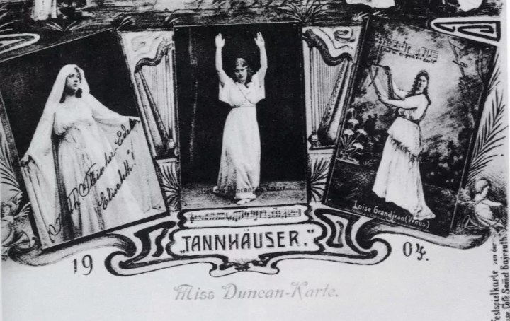 22 Wagner web1904 gelang in Bayreuth ein zukunftsweisender Coup. Siegfried Wagner hatte die amerikanische Pionierin Isadora Duncan in München gesehen und konnte seine zunächst zögerliche Mutter Cosima von der künstlerischen Unabdingbarkeit eines Engagements der damals in aller Munde Befindlichen überzeugen. Man verpflichtete die „Zukunftstänzerin“ nach Bayreuth, wo sie die erste Grazie tanzte. Ihr emotional-intuitives Reagieren auf Musik, ihre sinnlichen, von keiner Körperordnung gefassten Tanzformen, war eine neue Art, Wagner zu begegnen. In Duncans Gedanken hatte die Begegnung wohl schon stattgefunden, denn es kann kein Zufall sein, dass sie ihre 1903 veröffentlichte „Vorlesung“ „The Dance of the Future“ / „Der Tanz der Zukunft“ nannte. 23 Wagner web