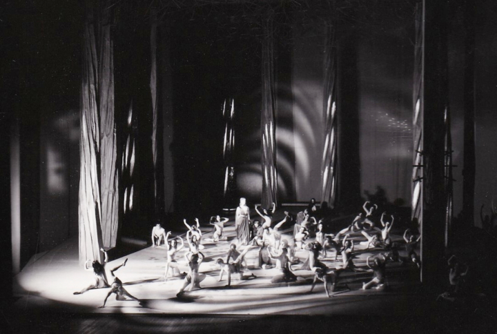 24 Wagner webEine „freie“ Realisierung brachte auch die bei Dorothee Günther ausgebildete „Hauschoreografin“ Gertrud Wagner 1954 und 1964 auf die Bühne. Gemäß der ästhetischen Verankerung ihrer Ausbildung ging die Choreografin in ihrer Arbeit weit über die Gestaltung des tänzerischen Geschehens hinaus, das sich in großen – elliptischen – Raumstrukturen manifestierte. Dabei gelang es Gertrud Wagner, in den fast abstrakten tänzerischen Gestaltungen die sinnliche Atmosphäre der Szene erlebbar zu machen. Darüber hinaus war sie auch für die Bewegungsregie des Chores wie für die Personenregie verantwortlich. Der zu dieser Zeit als kontroversieller Choreograf bekannte Maurice Béjart gestaltete 1961 das Bacchanal in Bayreuth, 1965 folgte Birgit Cullberg, 1972 der junge John Neumeier, 1985 Iván Markó.