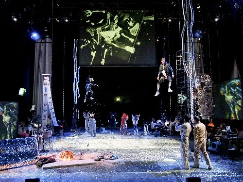 Zu viel Weltnachrichten scheinen aber selbst den mit allen darstellerischen Mitteln gewaschenen SchauspielerInnen nicht wohl zu bekommen. Ein ermattetes Ensemble stellt sich am Ende eines 120-stündigen Kommunen-Wochenendcamps, zu dem sich das gesamte künstlerische Team der Produktion in der Halle E im Museumsquartier "eingeschlossen" hat, den ZuschauerInnen, die am Abend die Ergebnisse begutachten dürfen. Der Nachrichten-Overkill scheint die Magie der Kunst, die nach Adorno „von der Lüge Wahrheit zu sein“ befreien kann, erschreckend zum Erliegen zu bringen. Zuweilen funkeln zwar Juwelen Stemann`scher Performance-Kunst, wenn Nachrichten als Musical oder im Chor gesungen werden. Auch als Gute-Nacht-Geschichte funktionieren sie, oder wenn die Nachrichten mit Wirklichkeits-Attributen materialisiert werden: Drohnenangriffe werden mit Spielzeug-Hubschraubern und gewaltigen Detonations-Sounds „verwirklicht“.