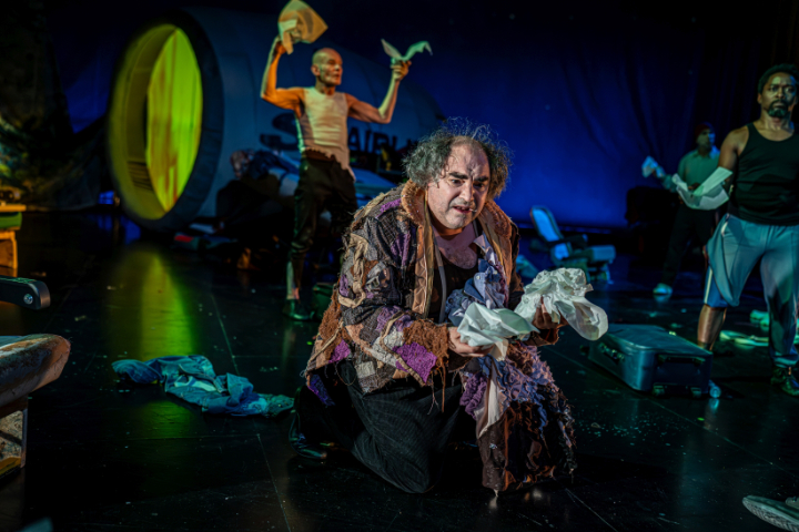 Seine Kompositionen sind Teil der großartigen Musikdramaturgie von Bernhard Fleischmann, die das Bühnengeschehen durchgehend akustisch begleitet. Bis zum Schluss ist er der unversehrte Pilot im Cockpit.