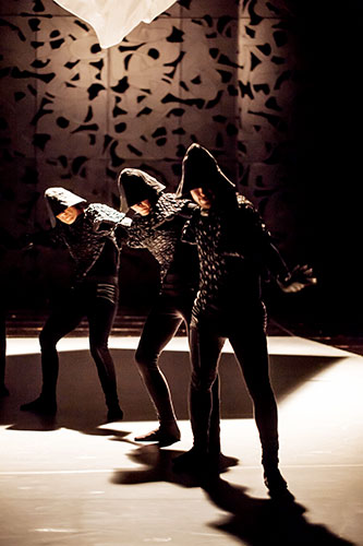 Die beide Norwegerinnen Ingri Midgar Fiksdal und Signe Becker lösen die Grenze zwischen Publikum und Performerinnen auf. Alle stecken in "Hoods" unter einer Haube, verlieren ihr menschliches Aussehen. Fasziniert und unbehaglich zugleich fühlten sich die in die Choreografie integrierten, als Zuschauerinnen Gekommenen bei der Uraufführung. Die norwegische Berichterstatterinnen waren begeistert und verliehen den Künstlerinnen den Kritikerpreis 2014.